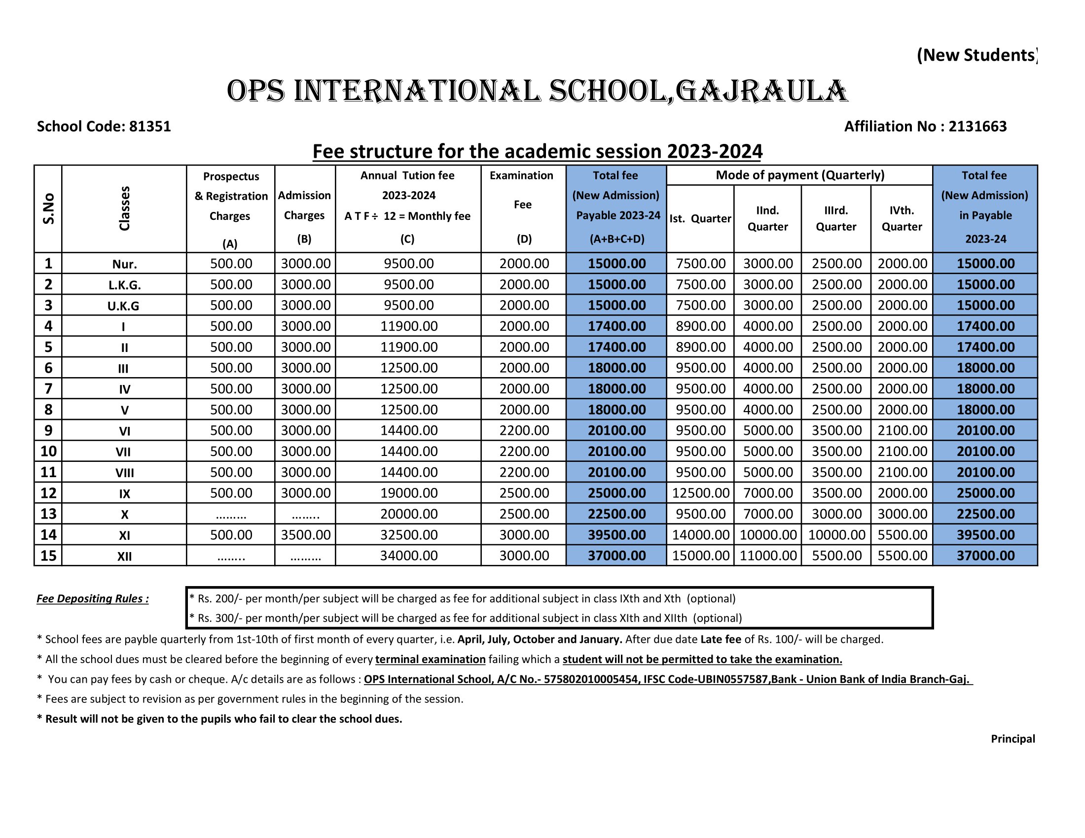 Fee Structure 2023-24